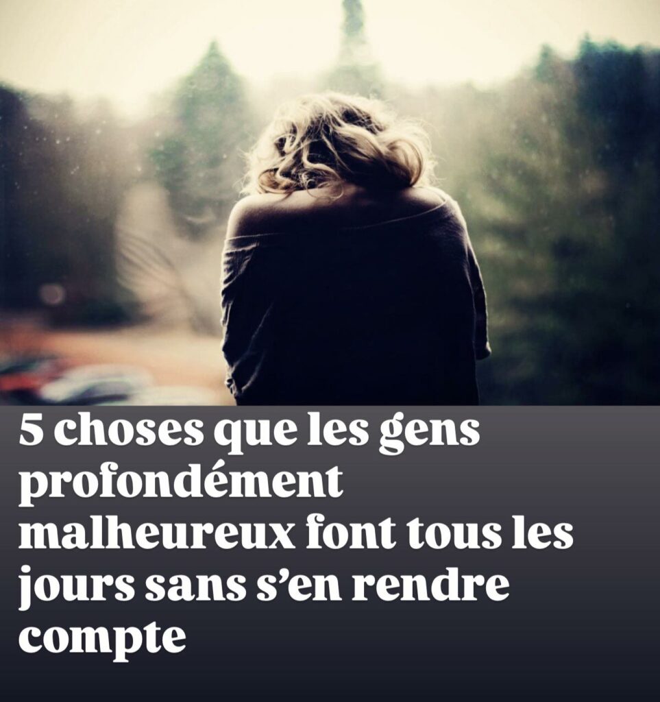 Le malheur ne s’installe pas du jour au lendemain. Il se glisse lentement dans nos habitudes, nos pensées et nos comportements quotidiens. Sans même en avoir conscience, certaines personnes nourrissent leur propre tristesse jour après jour. Pourtant, reconnaître ces schémas est déjà un grand pas vers le changement. Voici 5 choses que les gens profondément malheureux font tous les jours sans s’en rendre compte.